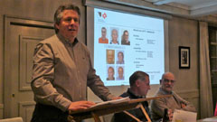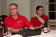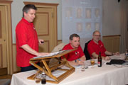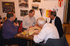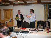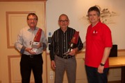 | Claude Jeanneret lässt in seiner Dankesrede an Roland Probst die wichtigsten Stationen seiner 9-jährigen Obmanntätigkeit nochmals Revue passieren. | Claude Jeanneret, unser neuer Obmann. | Bruno Wessner, unserer neuer Pressechef. | Thomas Martin, unser neuer Ersatzrevisor. |