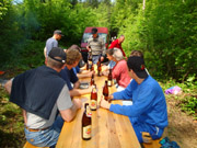 | Viel Lärm um unseren Hauptleiter Peter Wiesner! | Ein kühles Ziegelhof-Bier beflügelt zu Höchstleistungen! | En guete! | |