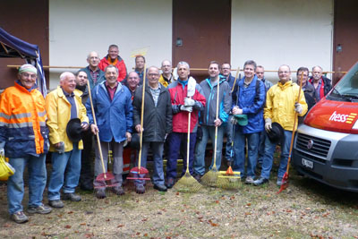 äusseren Bedingungen mit rund 20 Mann die Wege von Laub befreit, Sträucher