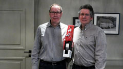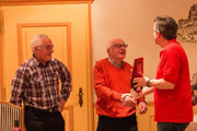 | An der DV des BLTV vom 17.11.2007 wurden Peter Blunier für 30 Jahre Aktivturner und Hugo Mangold für 10 Jahre Leiter geehrt - herzliche Gratulation! | Claude Jeanneret lässt die wichtigsten Stationen von Andi Hess während den vergangenen 15 Jahren als Verantwortlicher für den Vitaparcours nochmals Revue passieren und überreicht ihm als Dank für seinen vorbildlichen und kompetenten Einsatz je eine alte und neue Vitaparcours-Tafel, auf welchen alle anwesenden MR-ler unterschreiben dürfen. Die Nachfolge ist ebenfalls schon geregelt: Sein Sohn Tobias wird das Zepter übernehmen. | ||